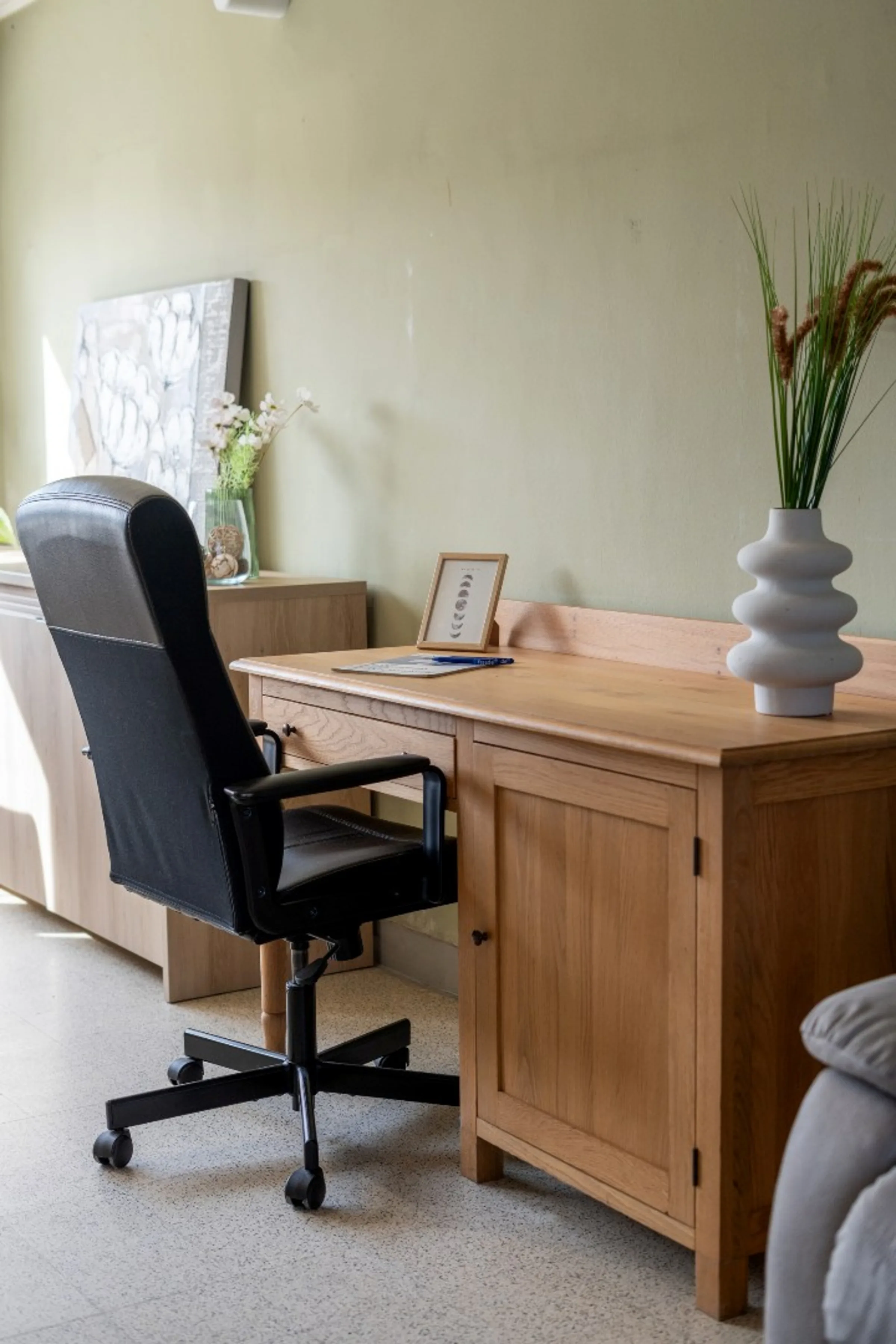 In de inkomhal bevindt zich het gastentoilet. De vernieuwde keuken (2022) is uitgerust met alle nodige toestellen en veel kastruimte. Aansluitend vind je de lichtrijke leefruimte met zicht op de tuin. Binnen en buiten lopen hier mooi in elkaar over, wat zorgt voor een aangename woonbeleving