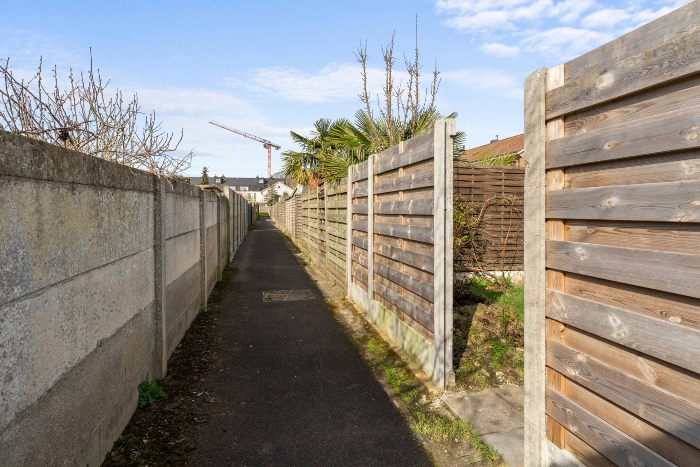 De zonnig tuin is een echte troef. Er is een bijgebouw en een praktische achteruitgang. Ideaal om fietsen of tuinmateriaal makkelijk achteraan binnen te brengen.